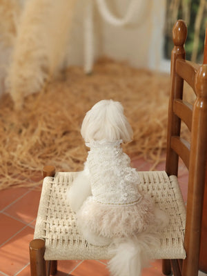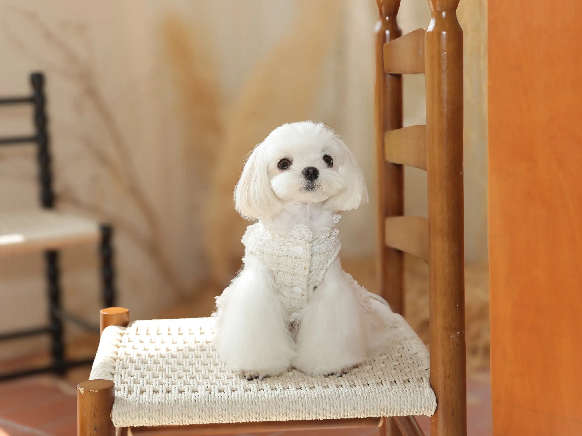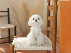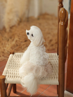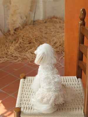 Some say elegance is found in the smallest details — a pearl glimmer, a bloom stitched with care. Inspired by a vintage jewelry box filled with delicate flowers and soft treasures, this tweed princess dress captures timeless sophistication for your little one. Made from premium polyester, its textured weave and pearl accents bring out a graceful charm that feels both classic and modern. Perfect for special outings, afternoon tea dates, or cozy café strolls, it’s a couture moment for dogs who deserve to shine with quiet grace.