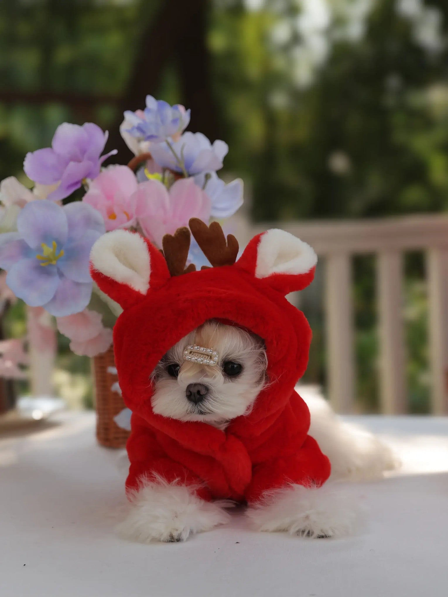 Korean Japanese Style Christmas Dog Coat - Red Warm Fleece Jacket for Small Puppies