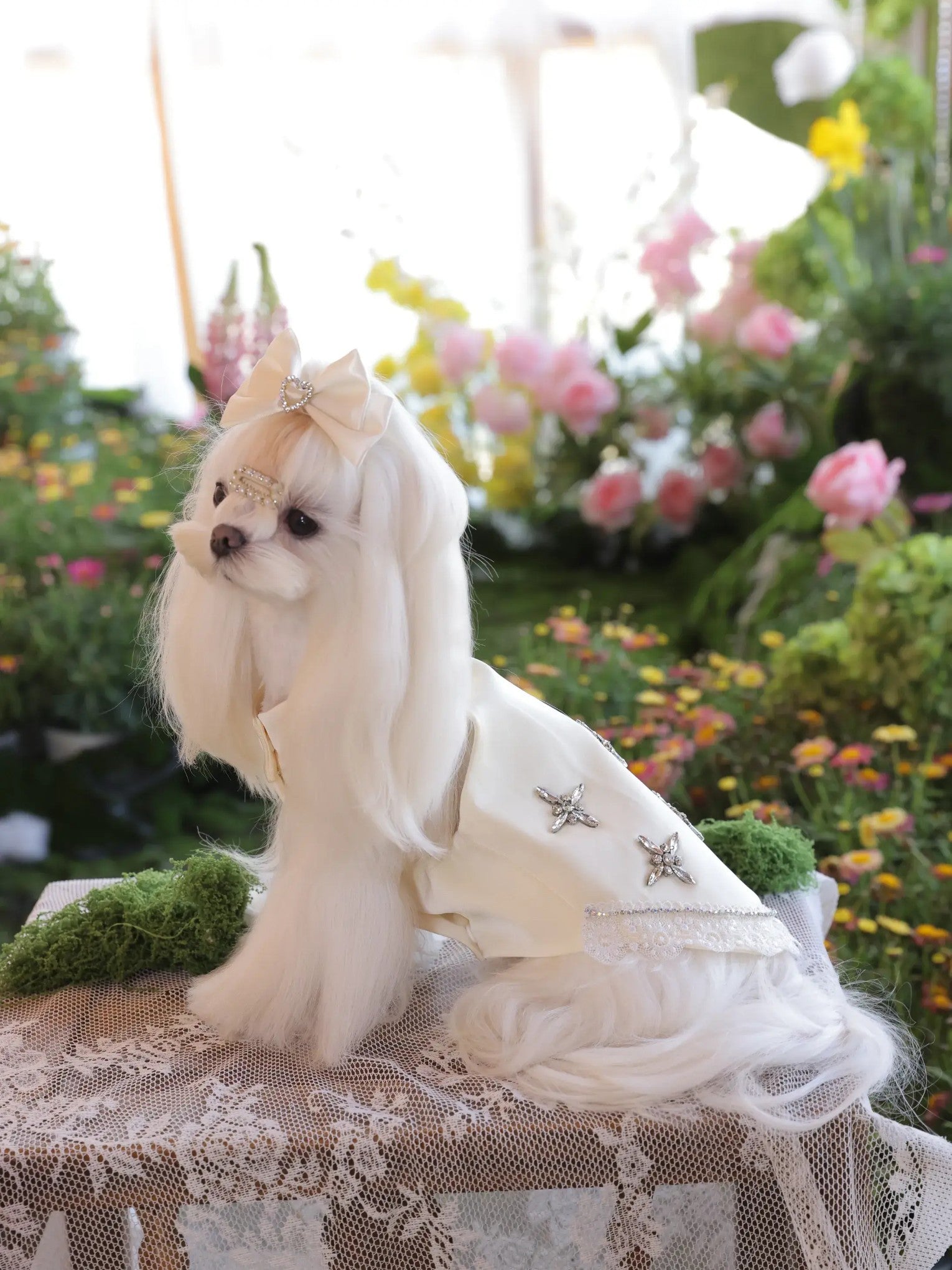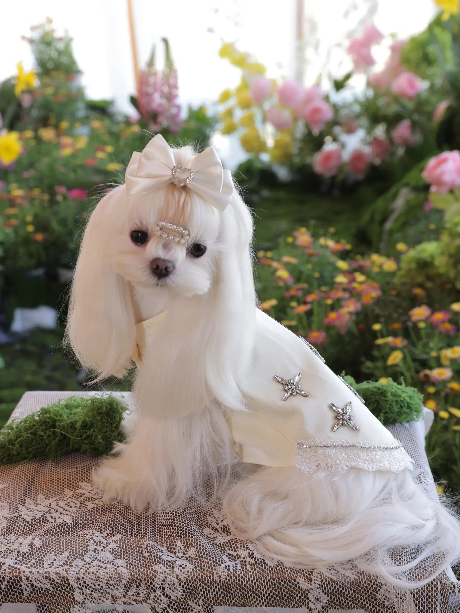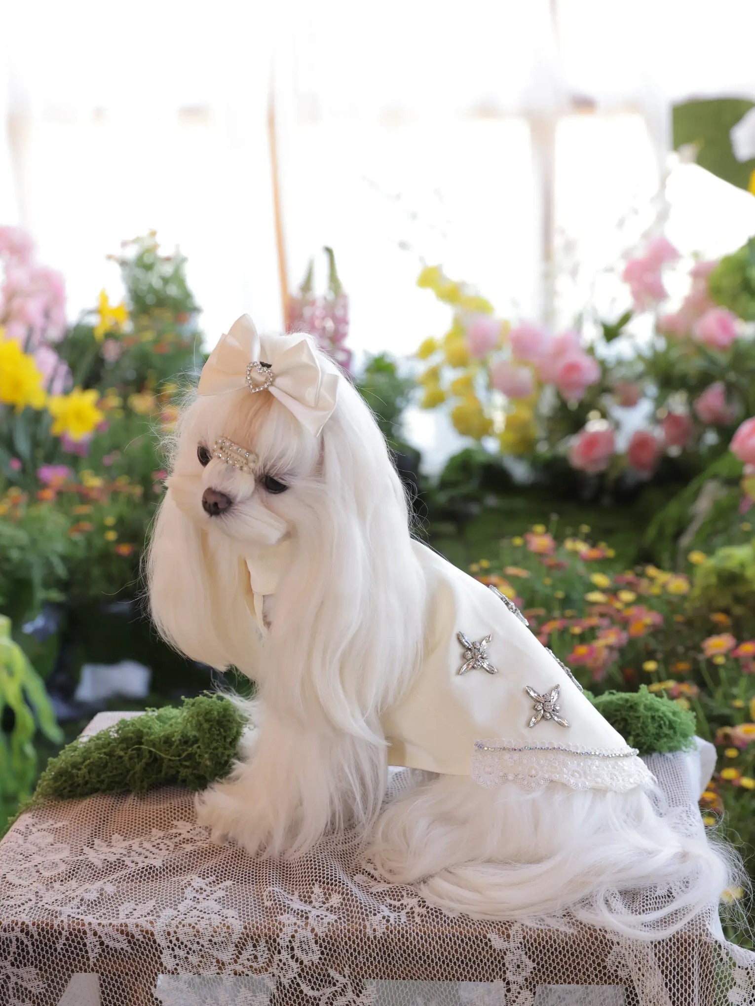 Lumière Crystal Dress – Premium Champagne Dog Dress with Rhinestones for Small Dogs